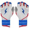 HIGHEST QUALITY. MOST DURABLE BATTING GLOVE IN BASEBALL: Each pair of BRUCE BOLT batting gloves are handmade by skilled craftsmen using only the highest quality 0.9mm Cabretta leather and stitching techniques which makes our gloves buttery soft but more durable than any other glove on the market.